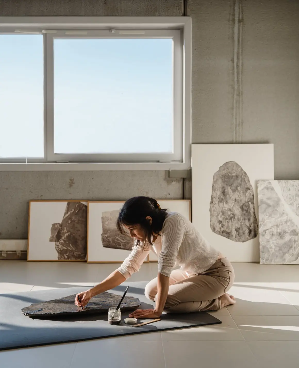 Creo cuadros con piedras y minerales naturales. Las plasmo sobre el papel con toda su forma y textura original para así transmitir toda su esencia proveniente de la Tierra.