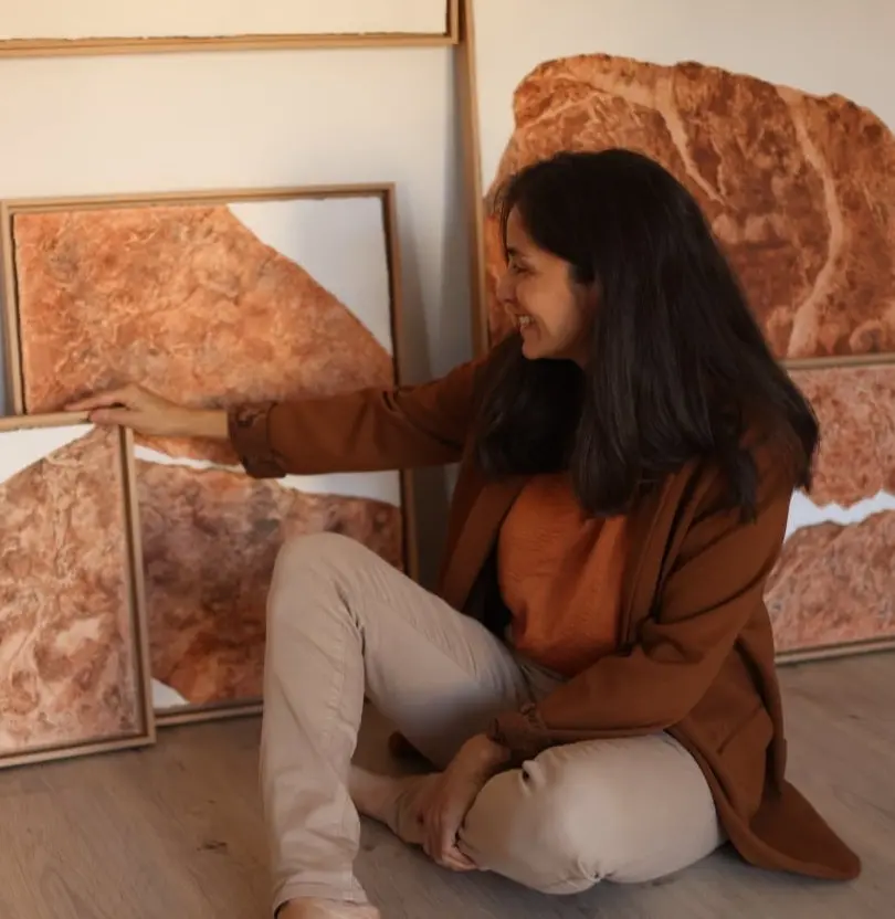 Creo cuadros con piedras y minerales naturales. Las plasmo sobre el papel con toda su forma y textura original para así transmitir toda su esencia proveniente de la Tierra.
