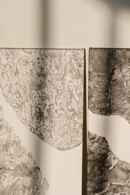 Plasmo la esencia de la piedra al papel con una metodología manual que he ido perfeccionando a lo lago de los años y me permite hacer un traspaso muy puro y realista. Inspirada en la técnica japonesa del Gyotaku y en el wabi-sabi.